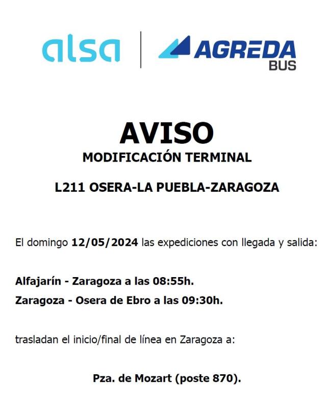 [LÍNEAS CTAZ] AFECCIONES EL DOMINGO 12 DE MAYO POR EVENTO DEPORTIVO EN ZARAGOZA